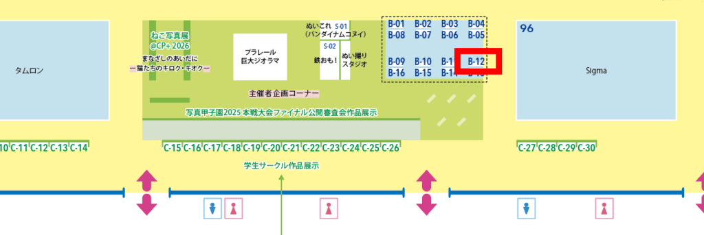 よしみカメラは、タムロン様とシグマ様の間にある主催者企画コーナー内にある、B-12ブースにて出展致します。
