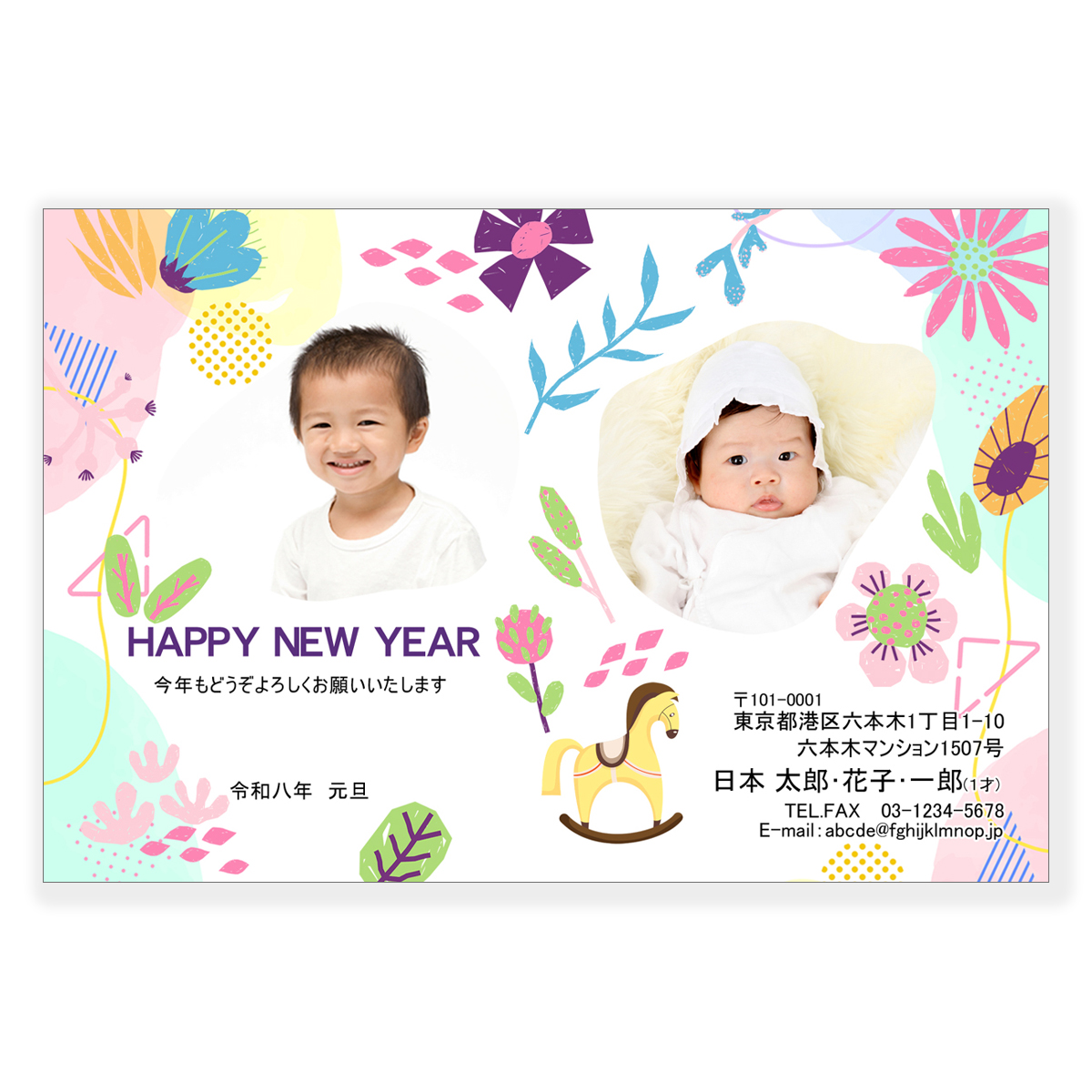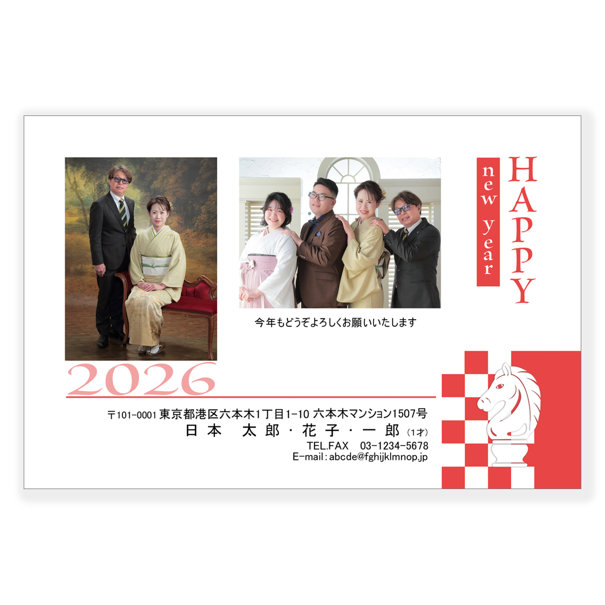 よしみカメラの年賀状は、思い出の写真を引き立たせるデザインです。